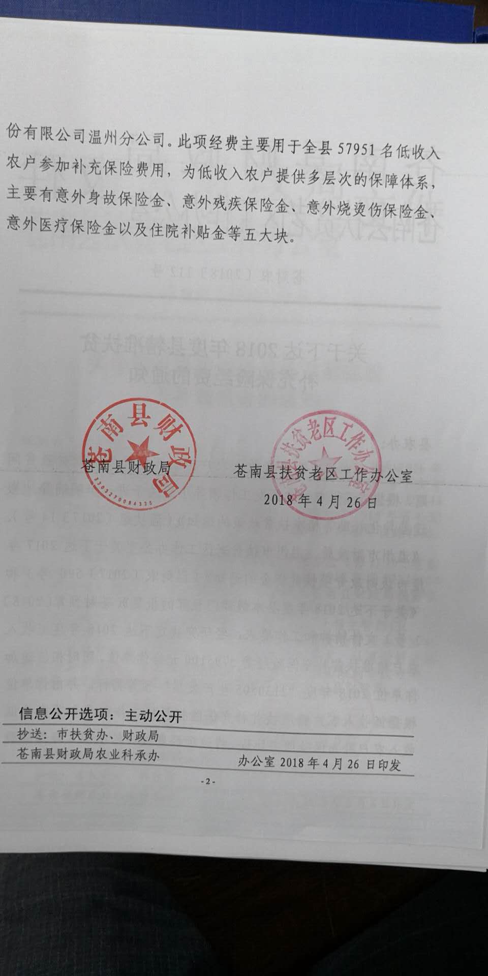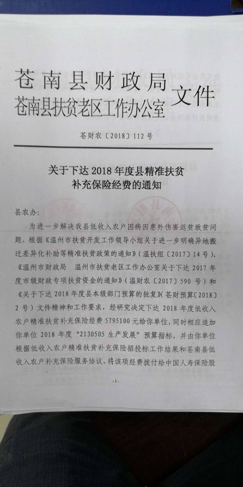 关于下达2018年度县精准扶贫补充保险经费的通知