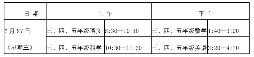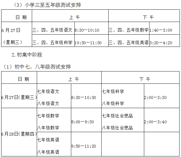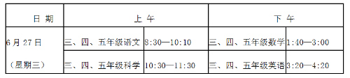(3)小学三至五年级测试安排