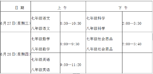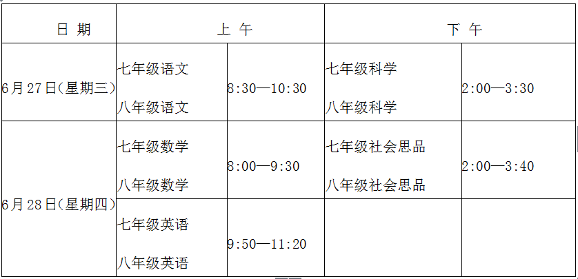 (1)初中七、八年级测试安排
