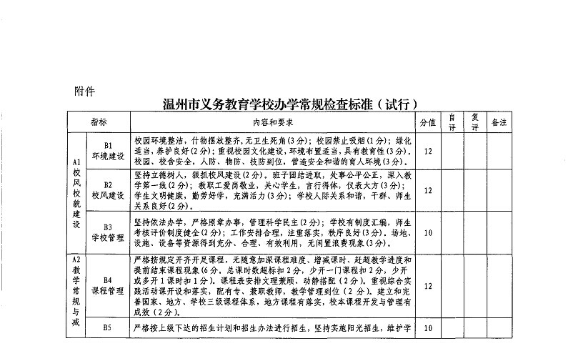 温州市教育局办公室关于印发温州市义务教育学校办学常规检查标准(试行)的通知