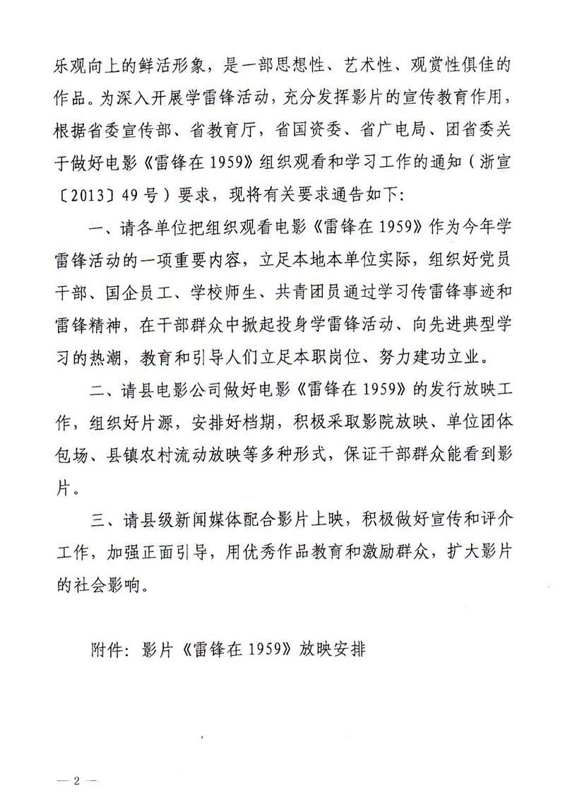 关于做好电影《雷锋在1959》组织观看和学习宣传工作的通知