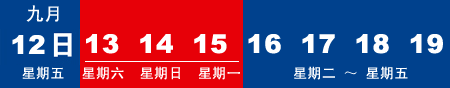 根据《国务院关于修改<全国年节及纪念日放假办法>的决定》,今年中秋节放假时间为9月13日至9月15日,共3天。其中,9月13日(星期六)为公休日;9月14日(中秋节)为法定节假日,9月14日(星期日)公休日调至9月15日(星期一)(图中蓝色为工作日,红色为假日)。