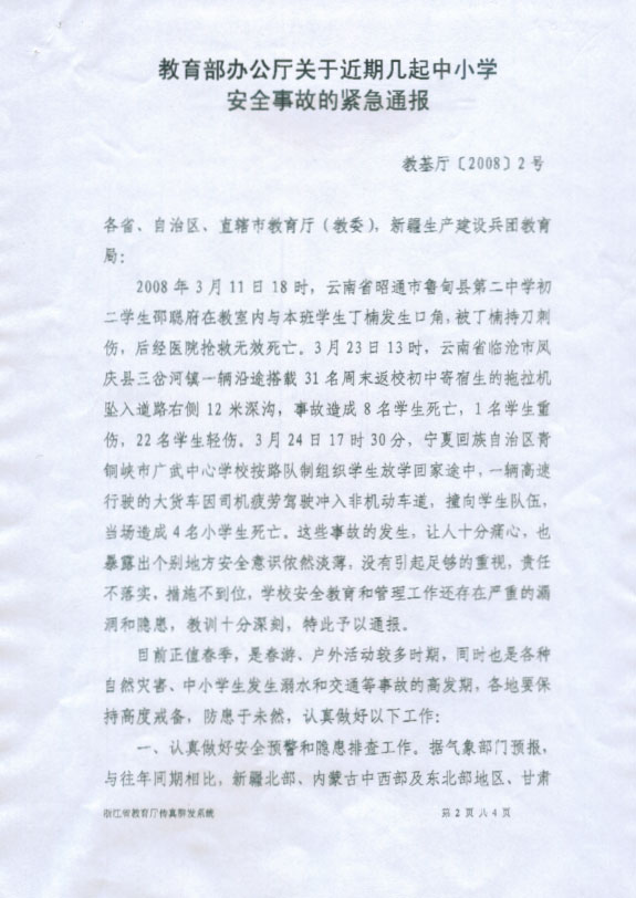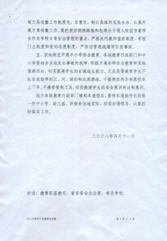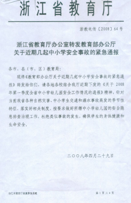 浙江省教育厅办公室转发教育部办公厅关于近期几起中小学安全事故的紧急通报