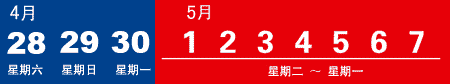 5月1日至7日放假,共7天(黄金周)。其中,1日、2日、3日为法定假日,将4月28日(星期六)、29日(星期日)两个公休日调至5月4日(星期五)、7日(星期一);5月5日(星期六)、6日(星期日)照常公休,4月28日、29日上班(见下图,其中蓝色为工作日,红色为假日)。