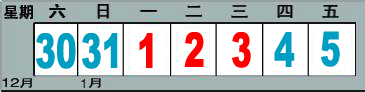(红色为休息日,蓝色为工作日)