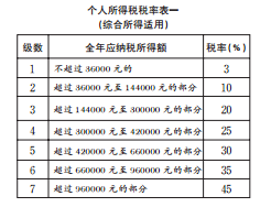 “(一)综合所得,适用百分之三至百分之四十五的超额累进税率(税率表附后);