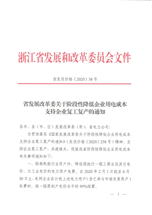 省发展改革委关于阶段性降低企业用电成本支持企业复工复产的通知