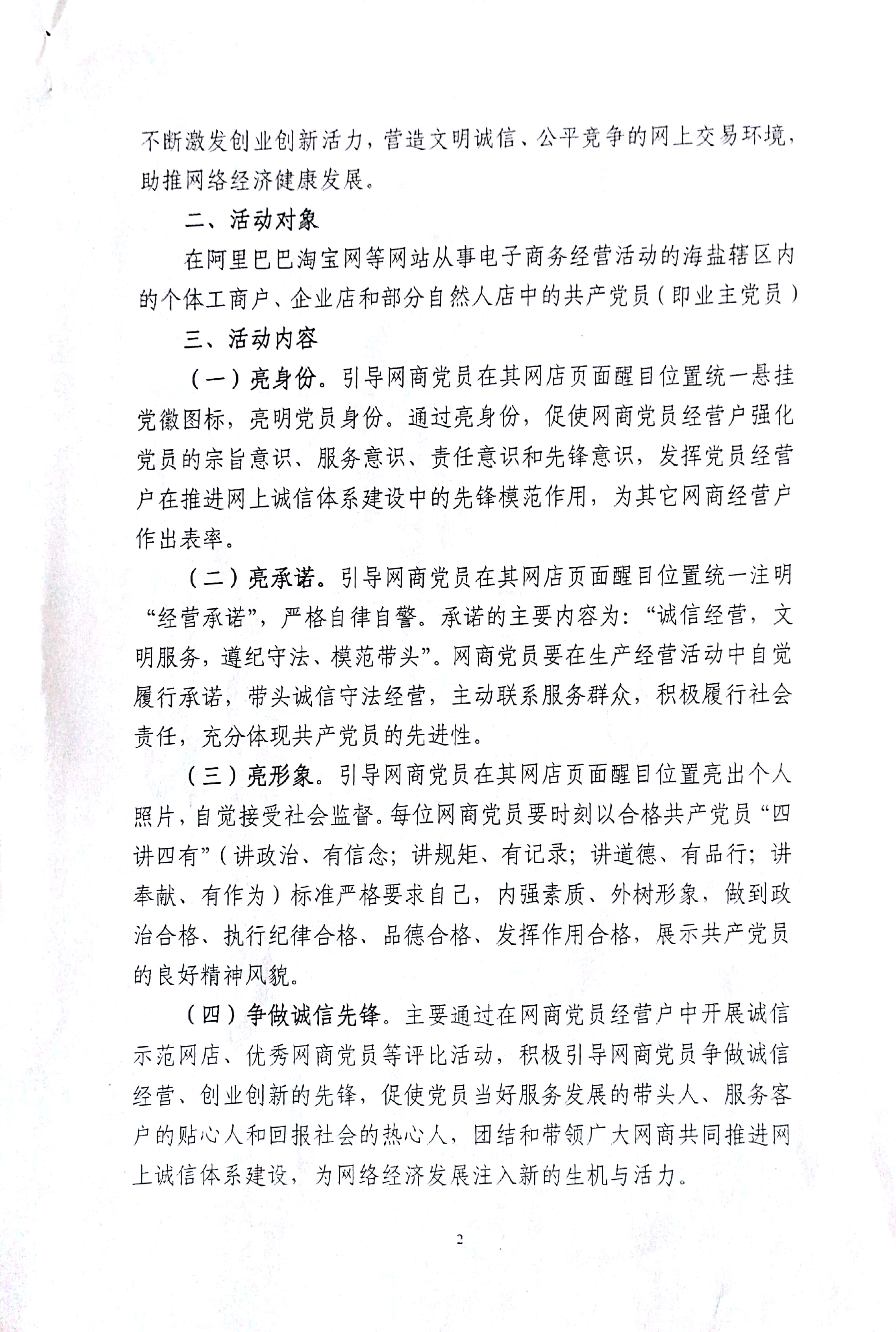 关于组织网商党员开展“亮身份、亮承诺、亮形象,争做诚信先锋”活动的通知