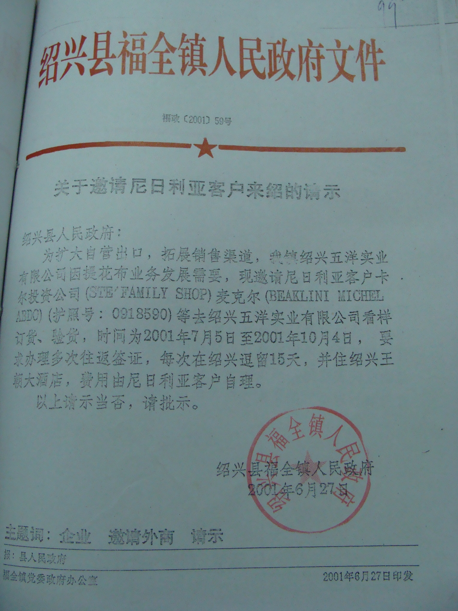 - 上一篇:关于邀请尼日利亚客户来绍的请示