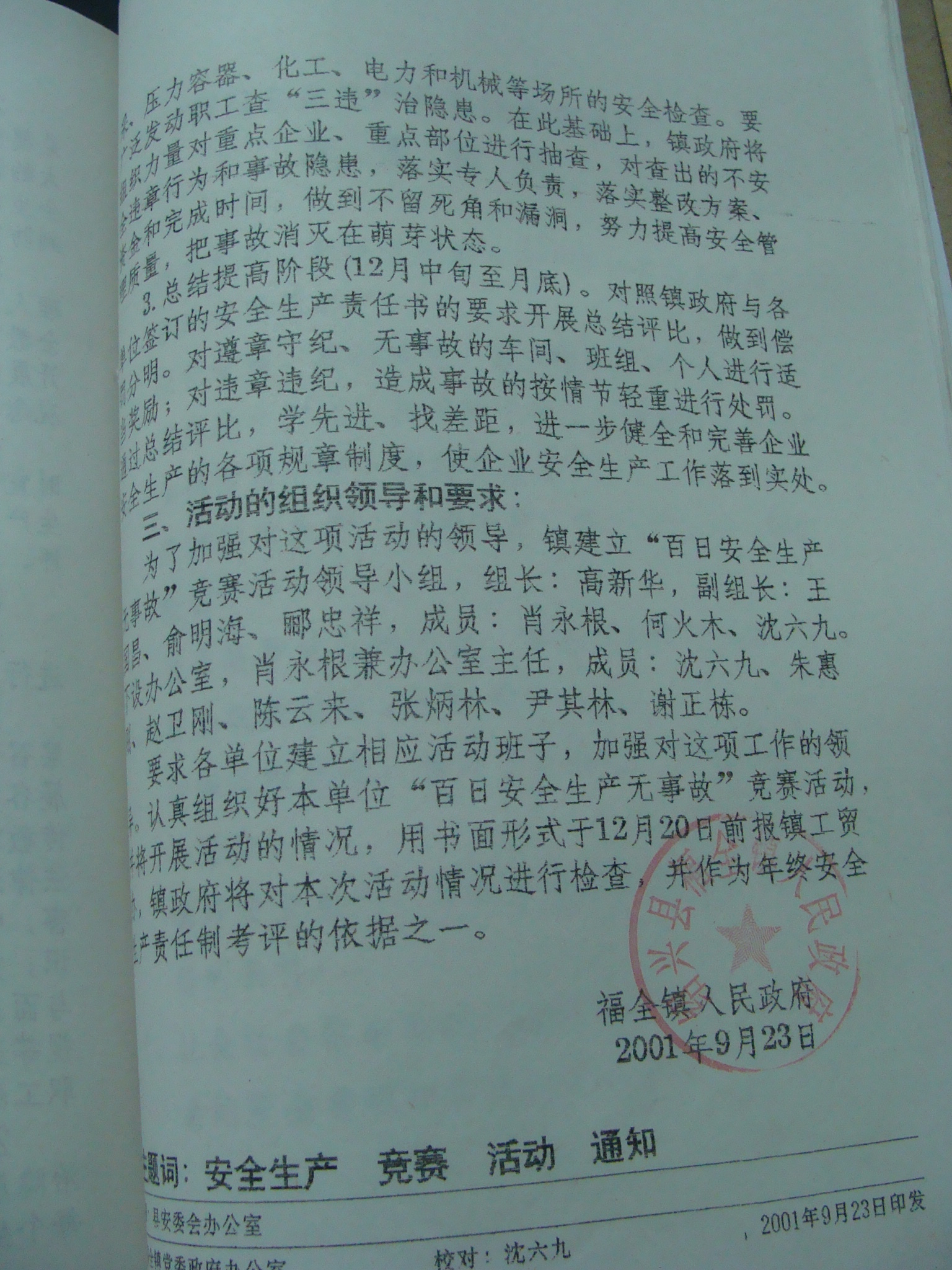 关于开展镇第八次“百日安全生产无事故”活动的通知