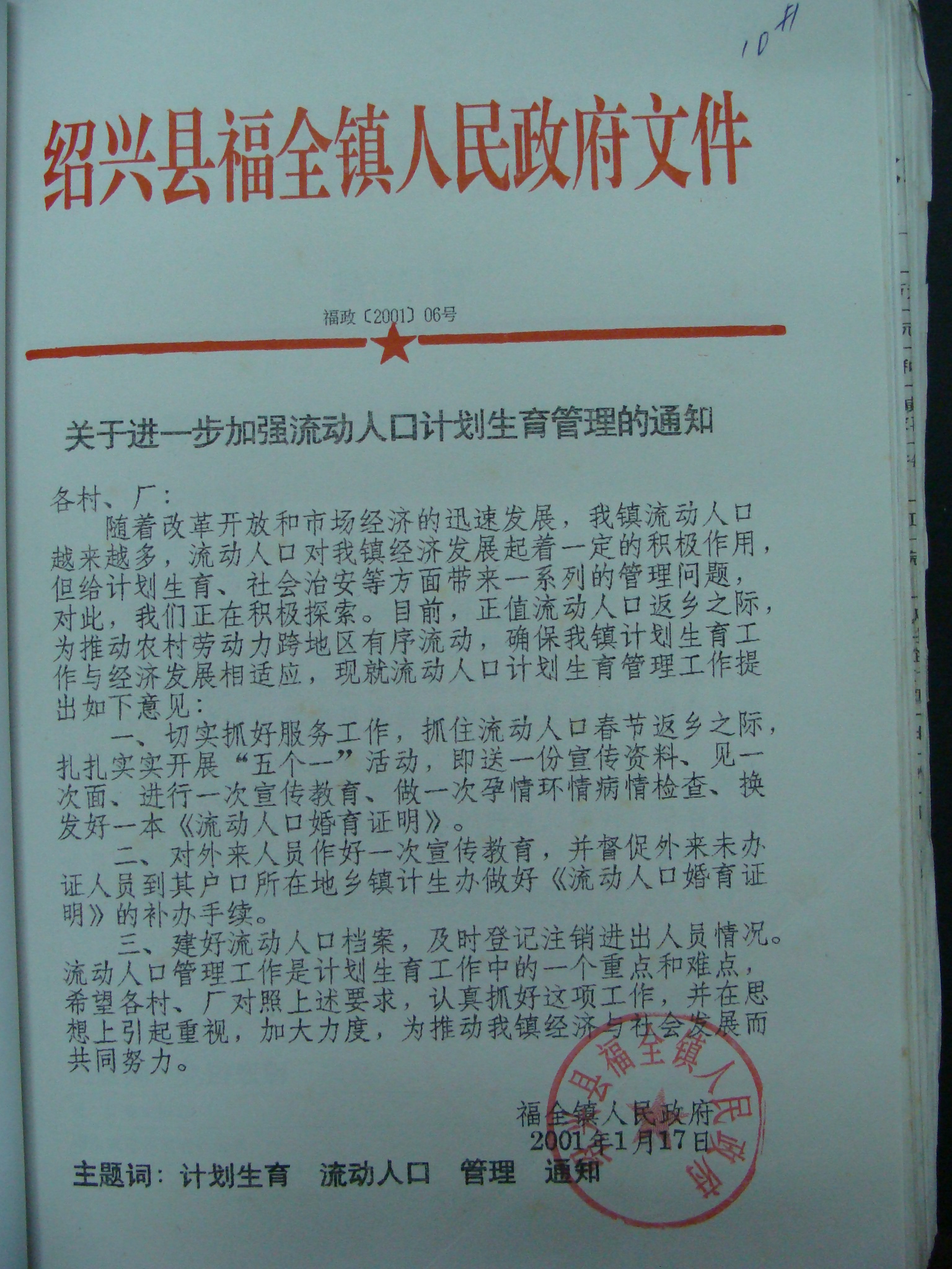 关于进一步加强流动人口计划生育管理的通知