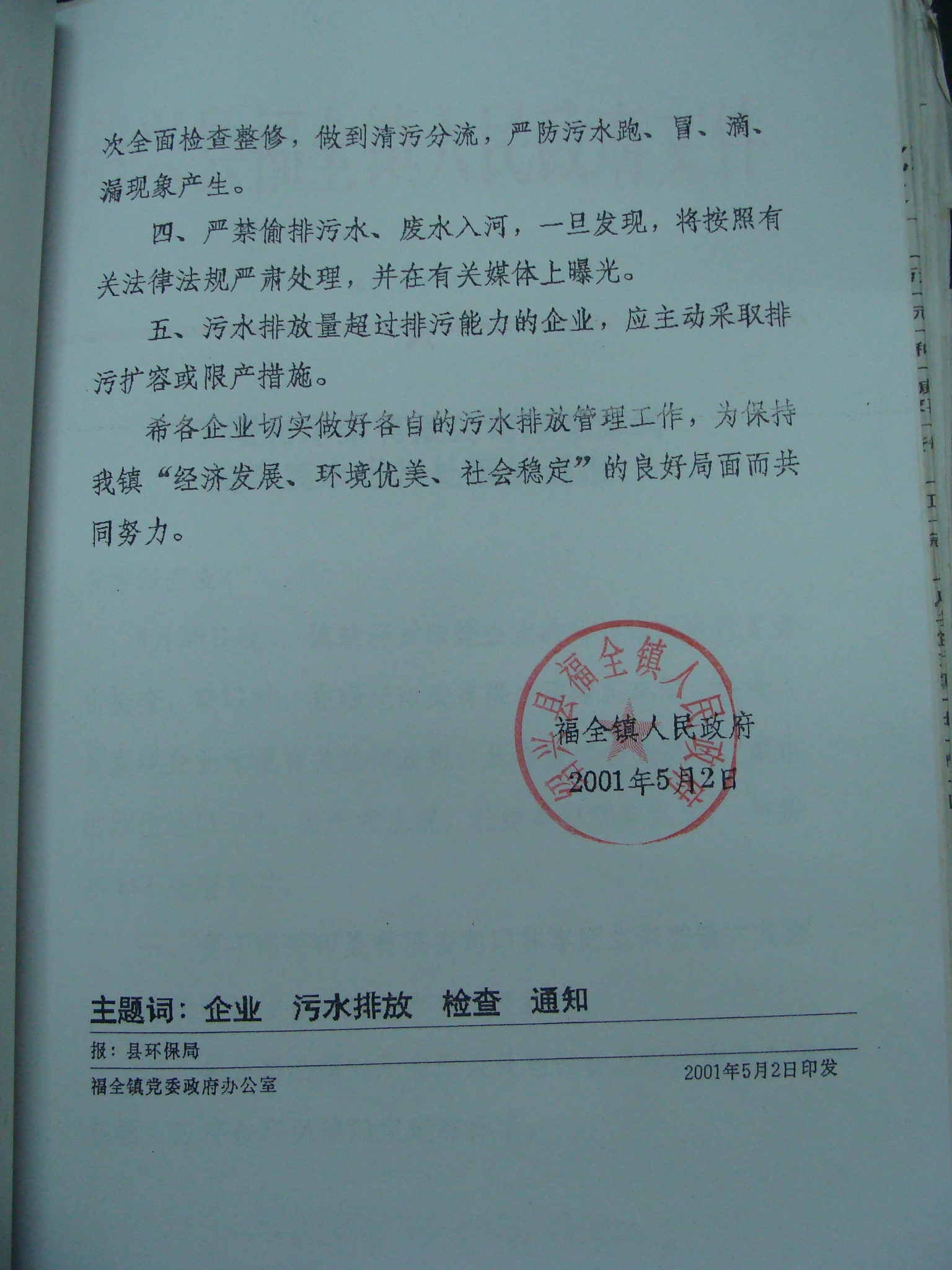 关于对污水排放开展夜间突击检查的通知