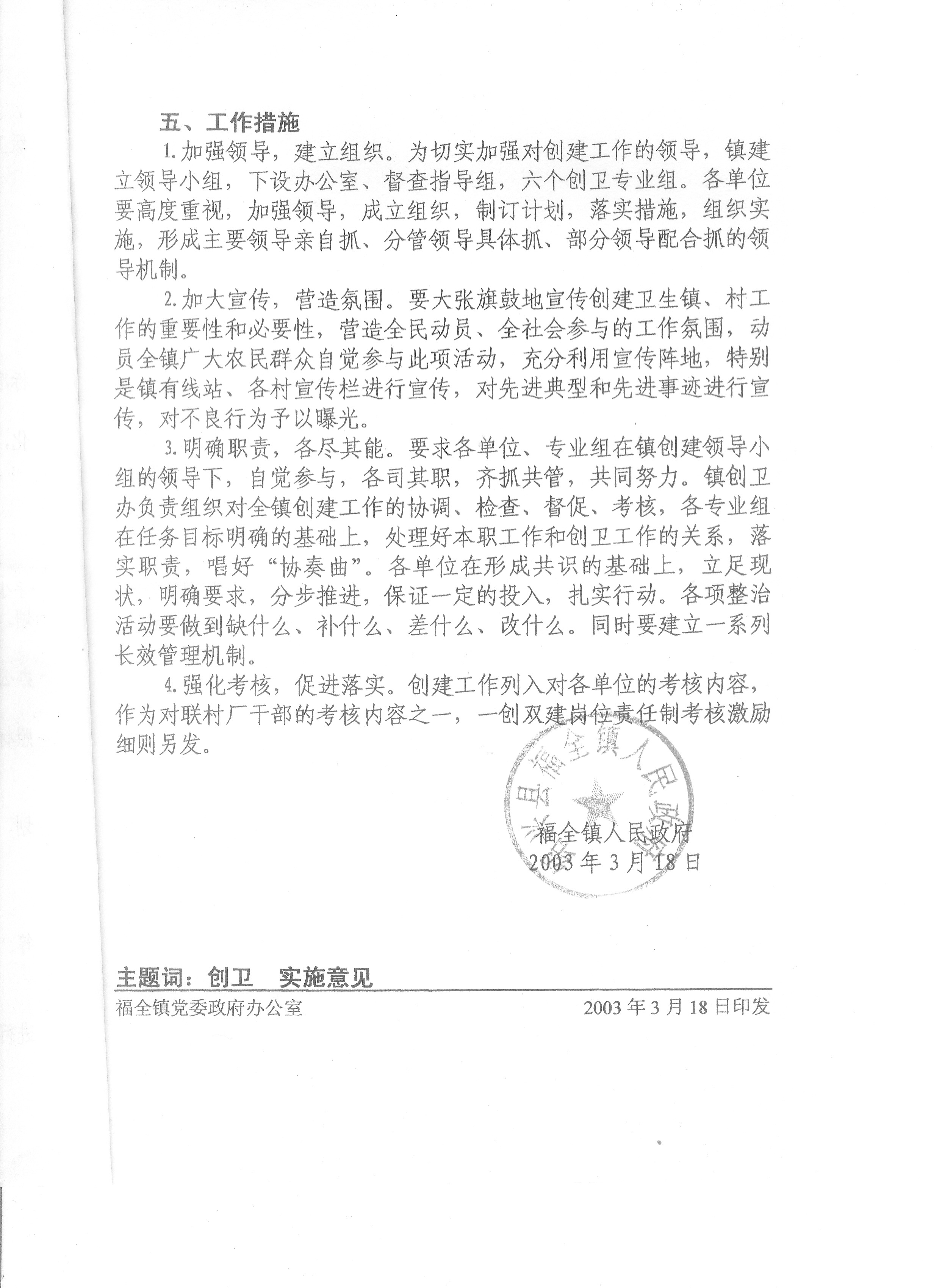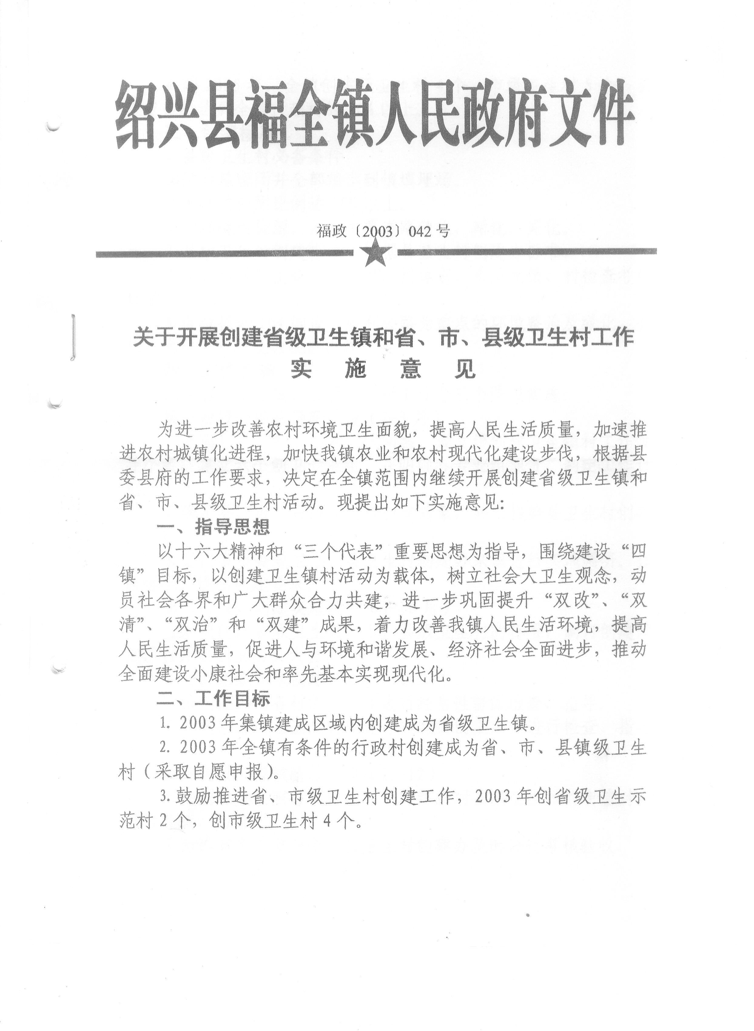 关于开展创建省级卫生镇和省、市、县级卫生村工作实施意见