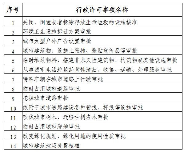 3.主要政策法规依据:《中华人民共和国行政复议法》、《中华人民共和国行政诉讼法》、《中华人民共和国行政许可法》、《城市道路管理条例》、《中华人民共和国固体废物污染环境防治法》、《城市市容和环境卫生管理条例》、《浙江省城市市容和环境卫生管理条例》、《城市建筑垃圾管理规定》、《浙江省绿化管理办法》等。