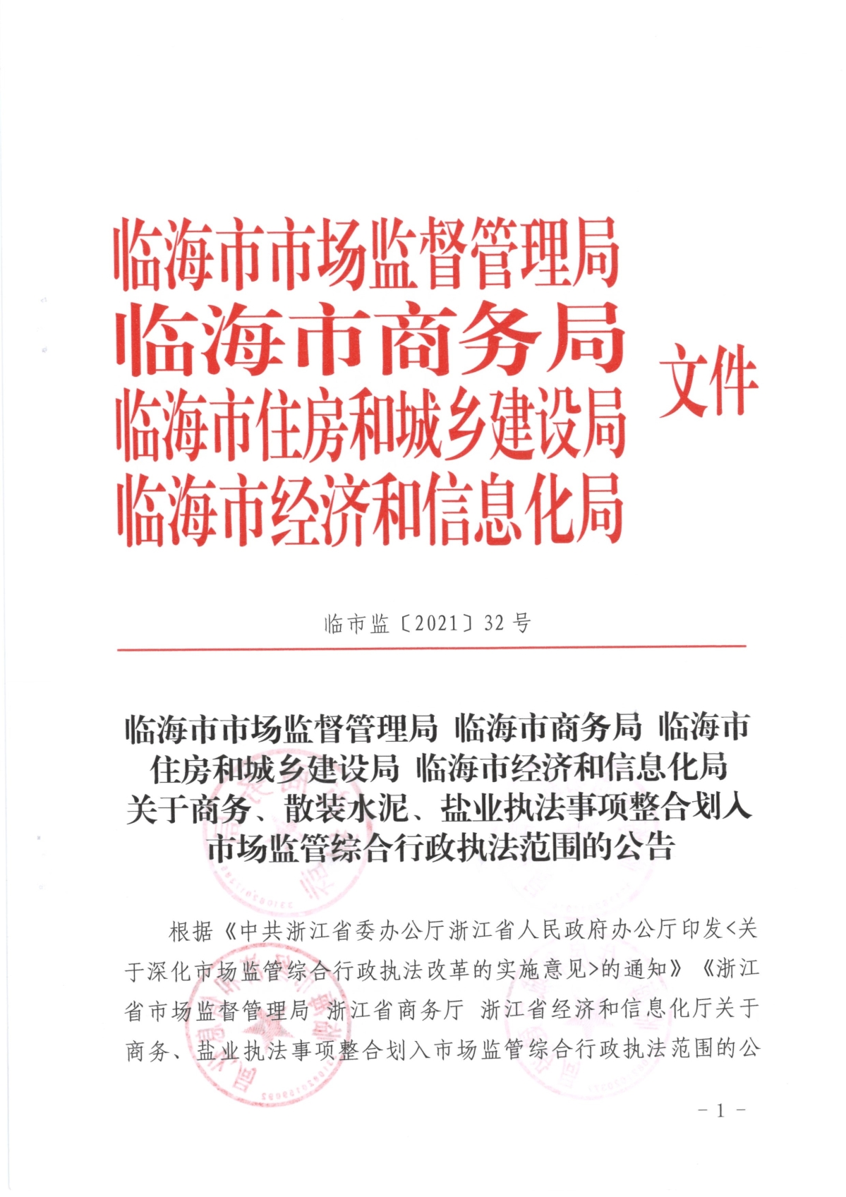 整合划入市场监管综合行政执法范围的商务、散装水泥、盐业执法事项目录