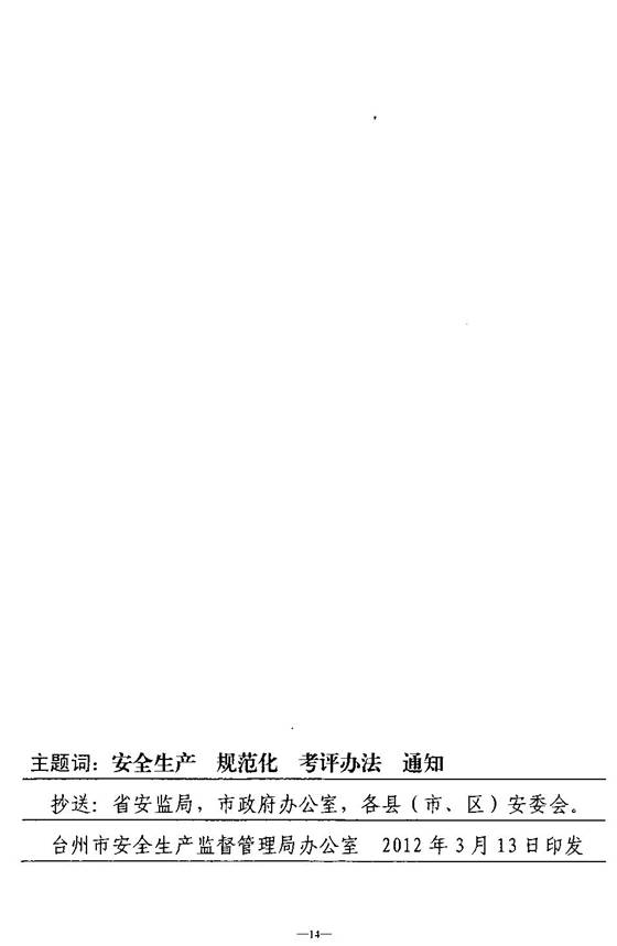 临安监〔2012〕49号—转发台州市安监局关于《台州市工贸企业安全生产规范化考评办法》的通知