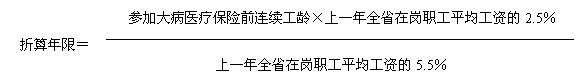 可折算成基本医疗保险缴费年限是指原国有、县以上集体改制企业改制时尚未到达法定退休年龄经分流的在册人员,在办理退休(职)手续时,市社会保险经办机构依据该参保人员参加原大病医疗保险前的连续工龄按一定方式折算而成。具体折算公式如下: