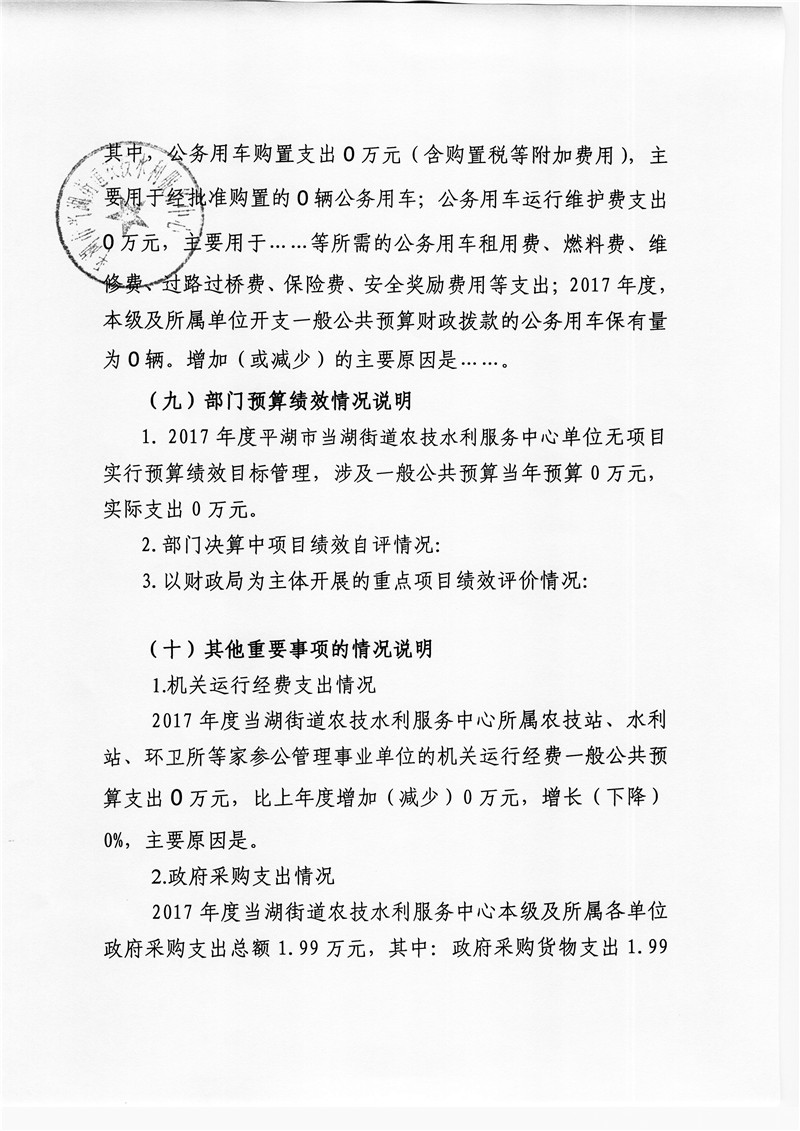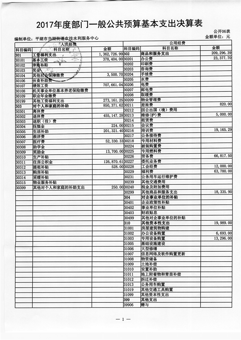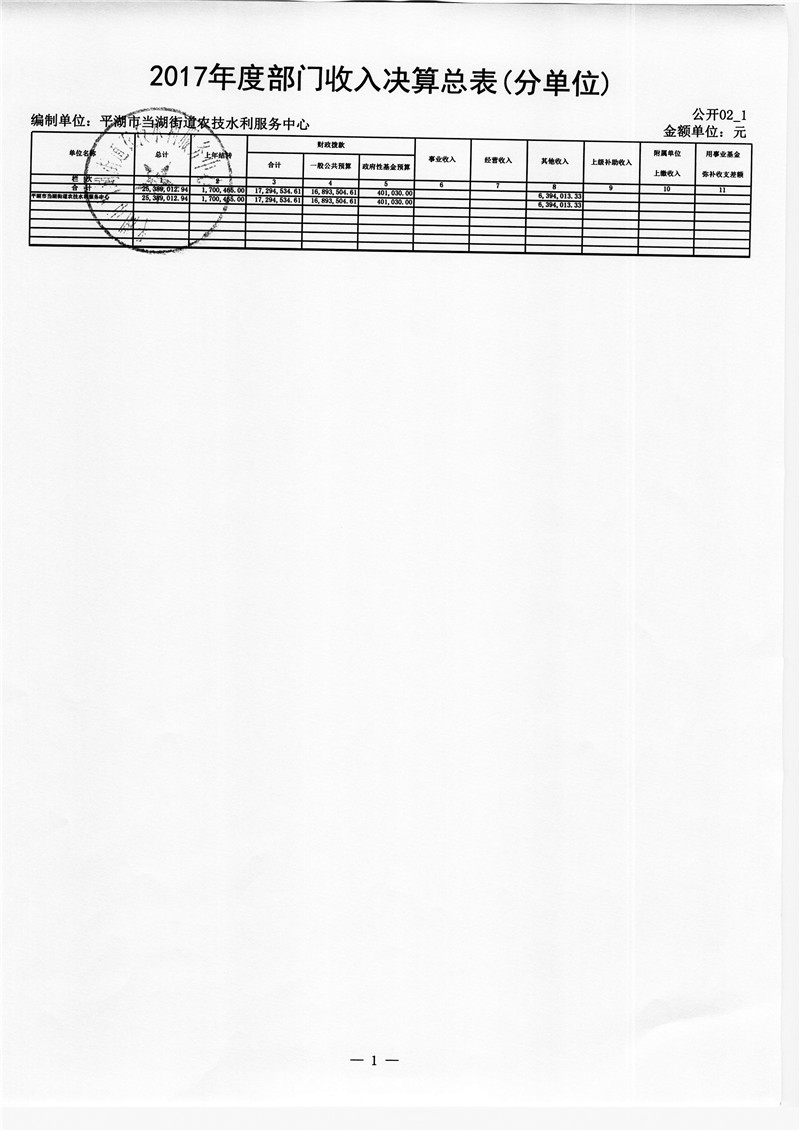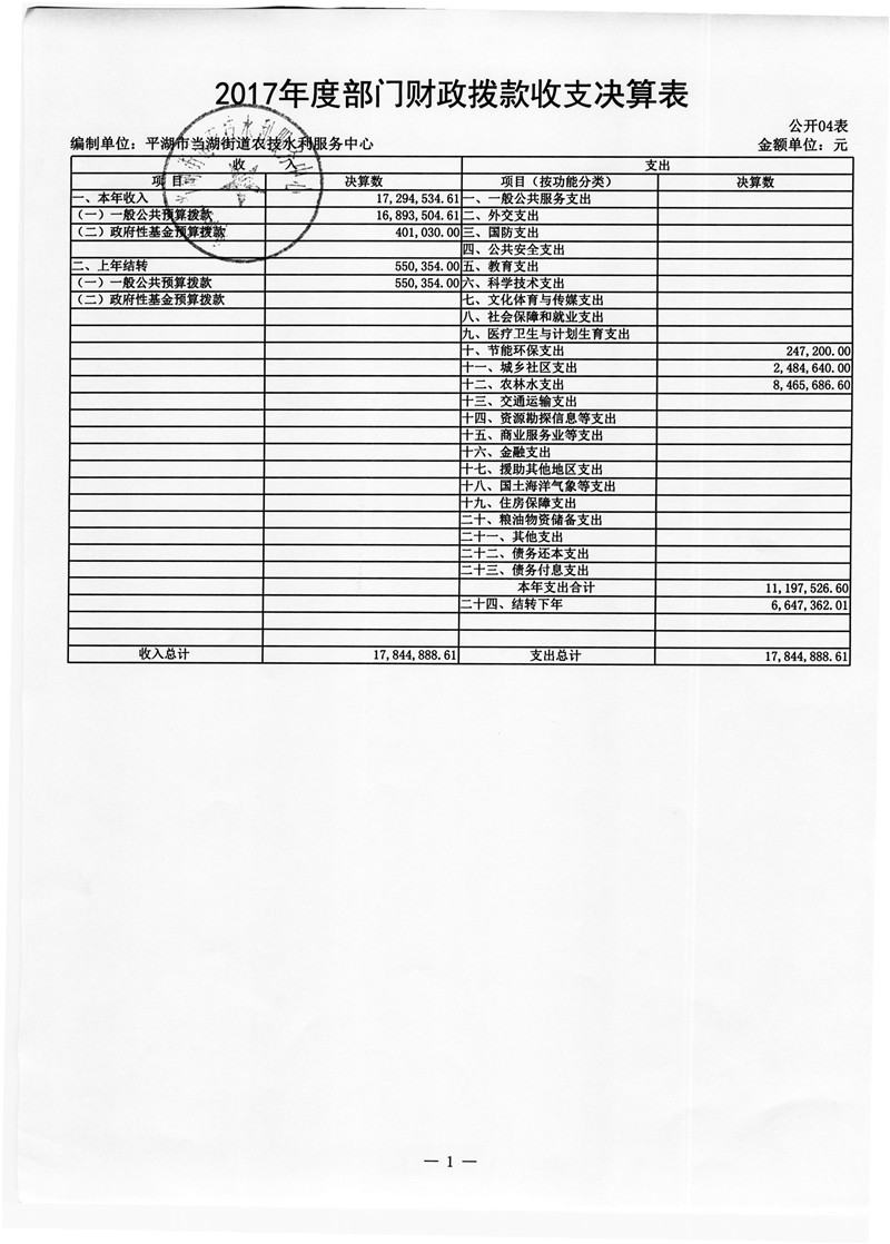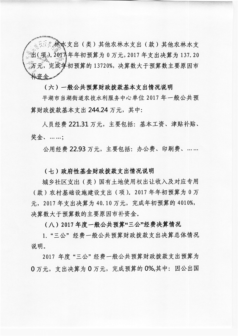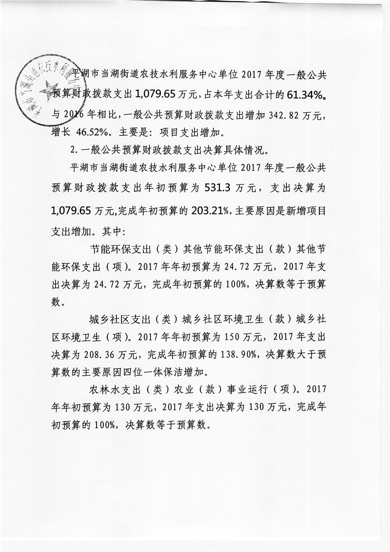 2017年平湖市当湖街道农技水利服务中心决算公开