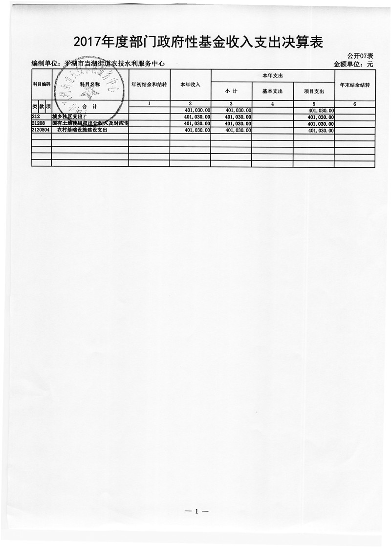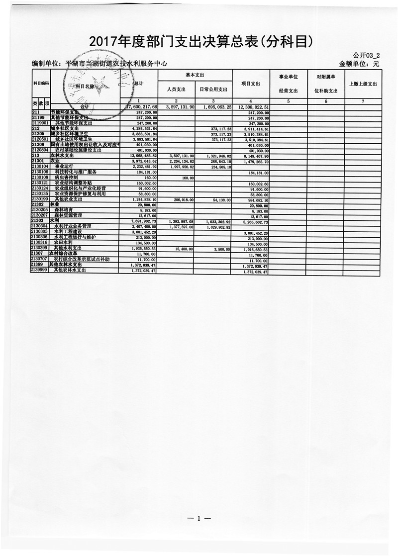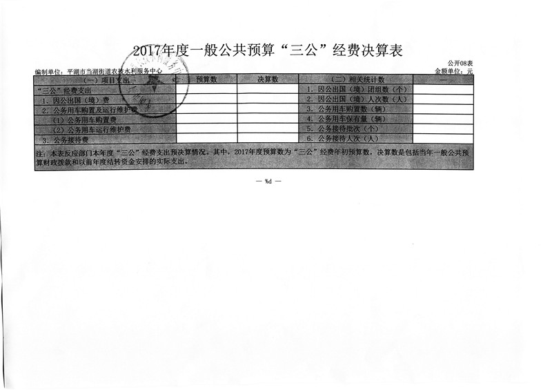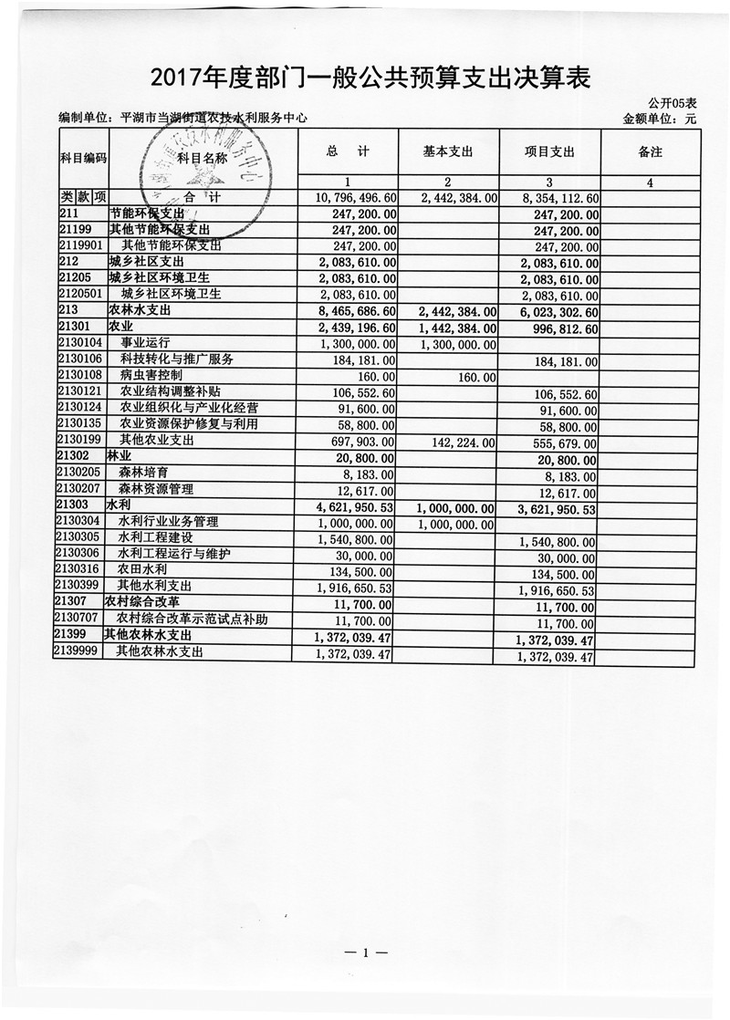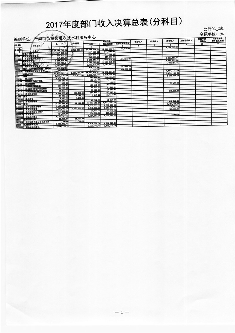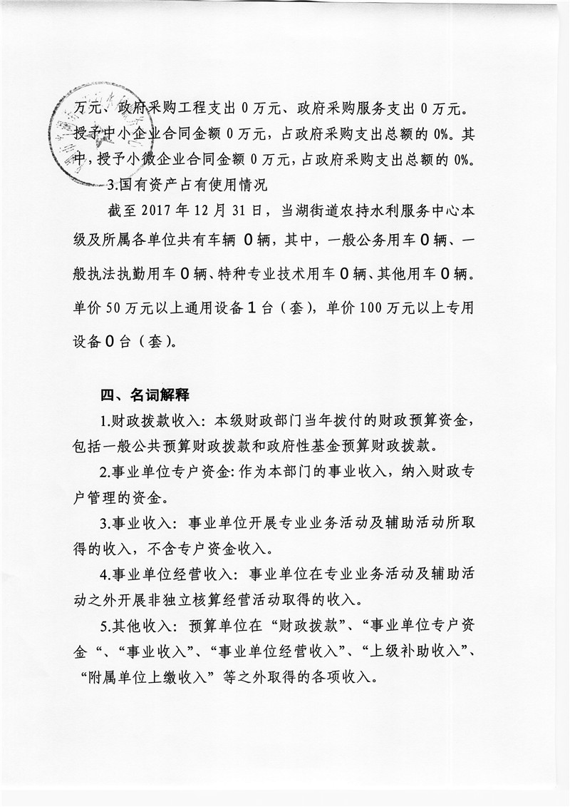 2017年平湖市当湖街道农技水利服务中心决算公开