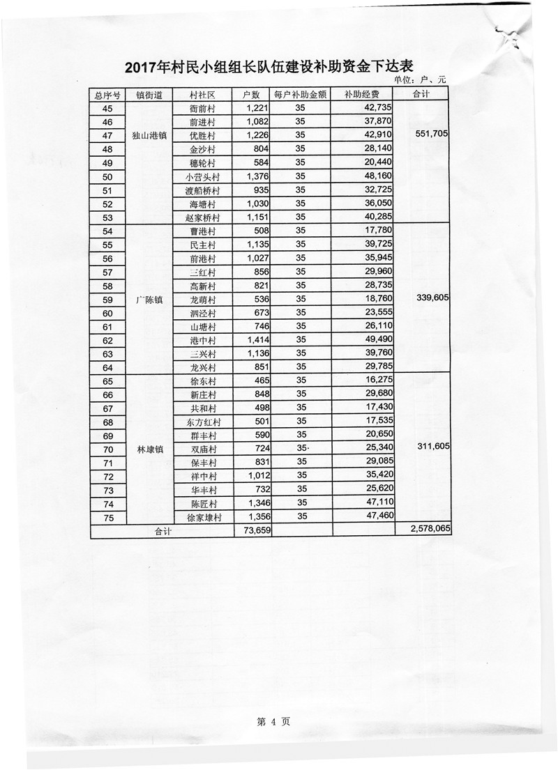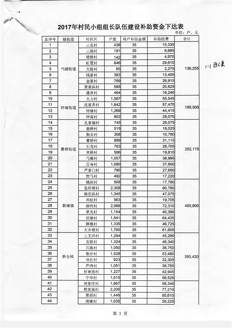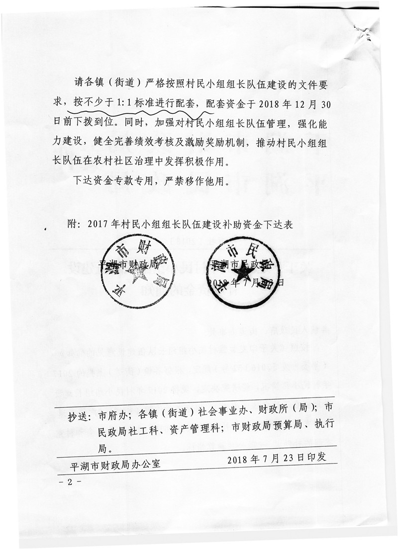 关于下达2017年村民小组组长队伍建设补助资金的通知