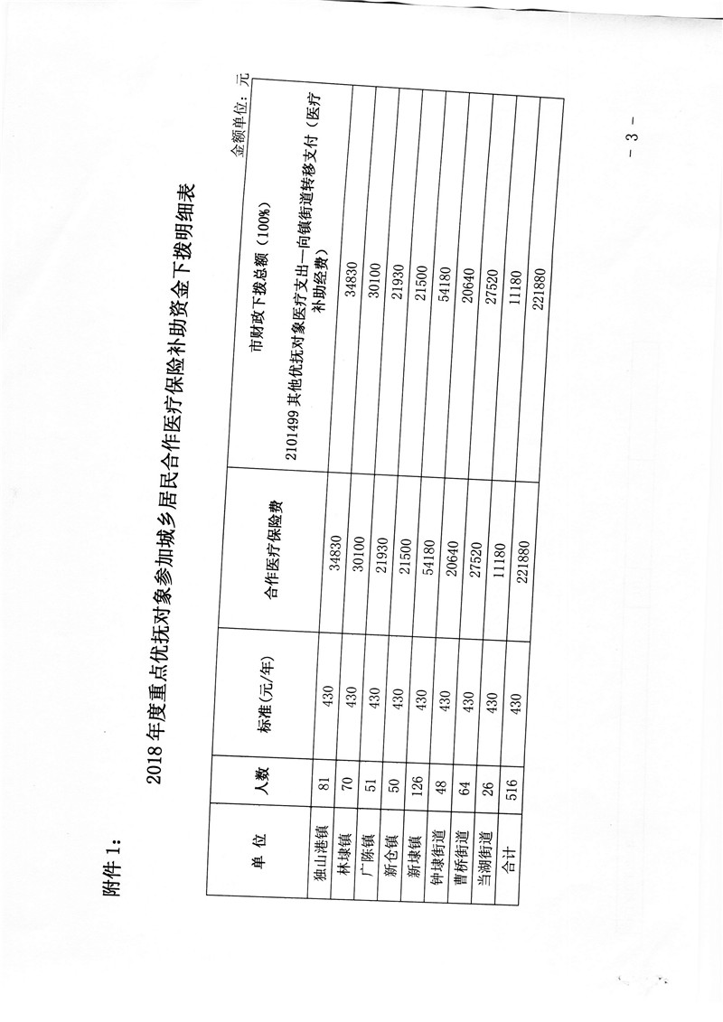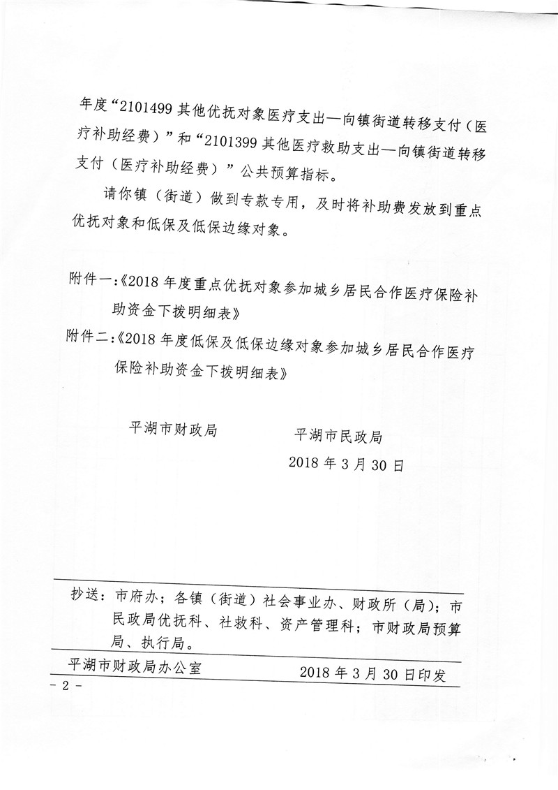 关于下拨2018年重点优抚对象和低保及低保边缘对象参加城乡居民合作医疗保险补助资金的通知
