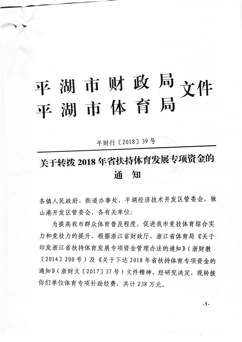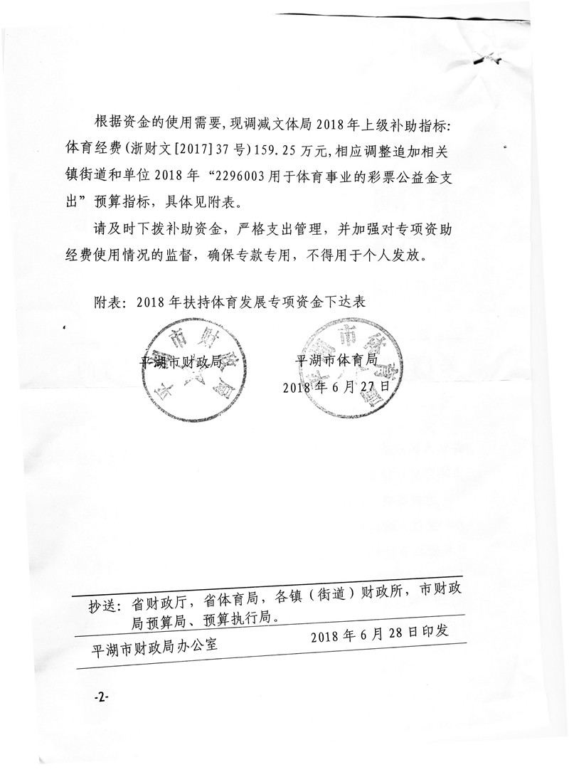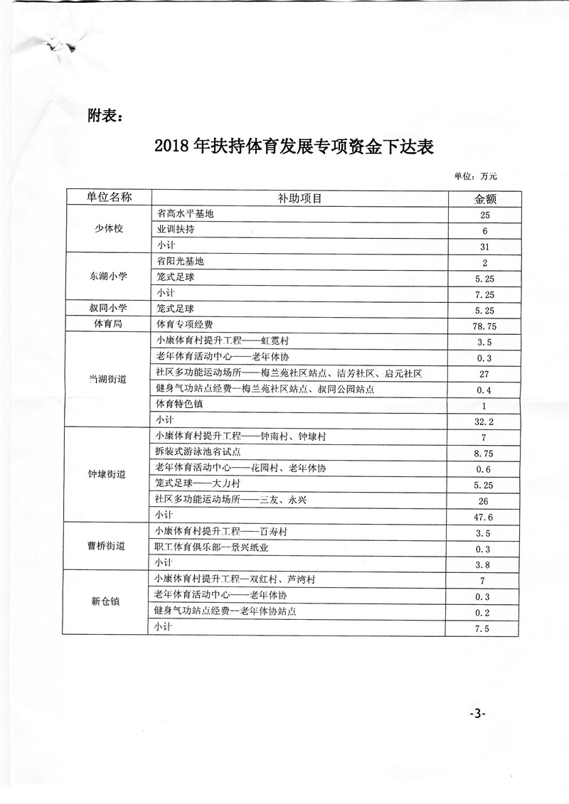 2018年省扶持体育发展专项资金