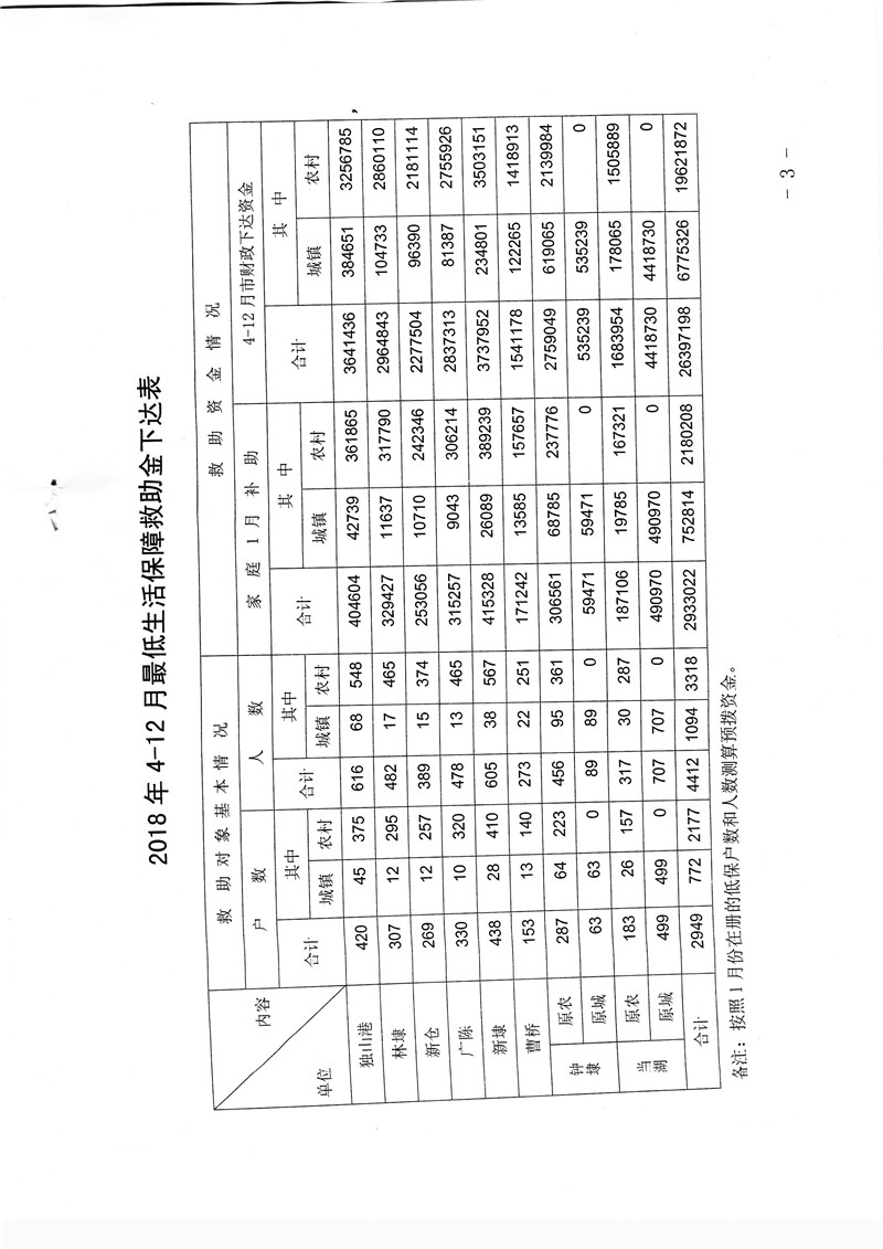 关于提前下达2018年4-12月最低生活保障救助金的通知