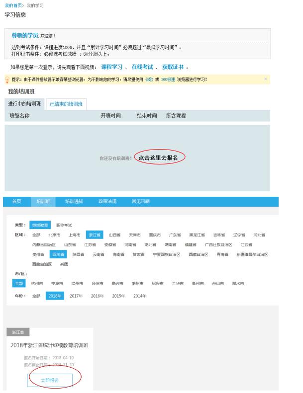 1、浙江省统计教育培训(继续教育)注册学习步骤