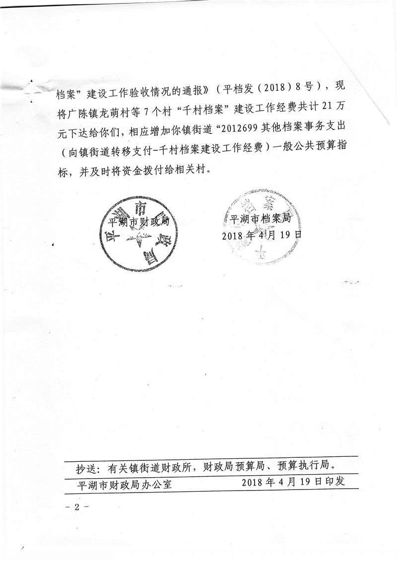关于下达“千村档案”建设工作经费的通知