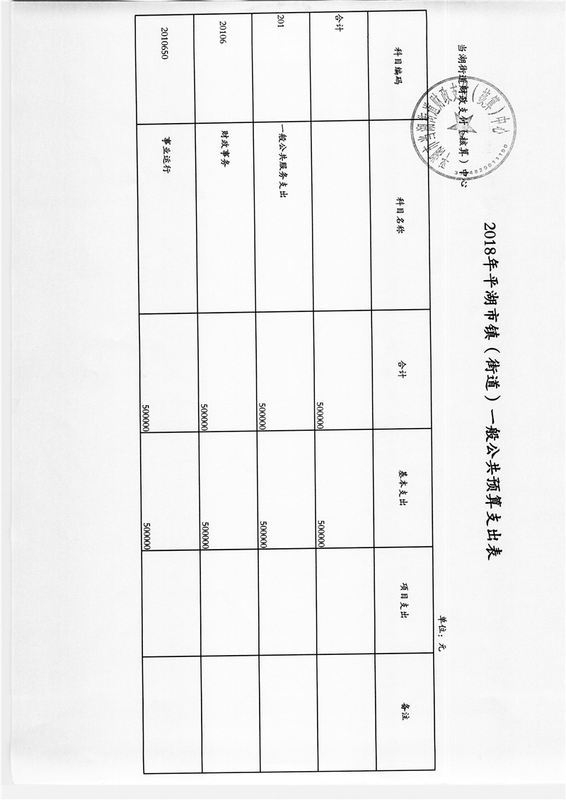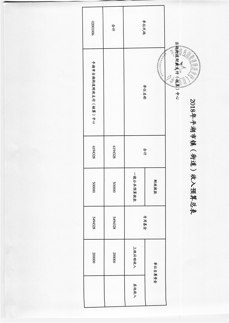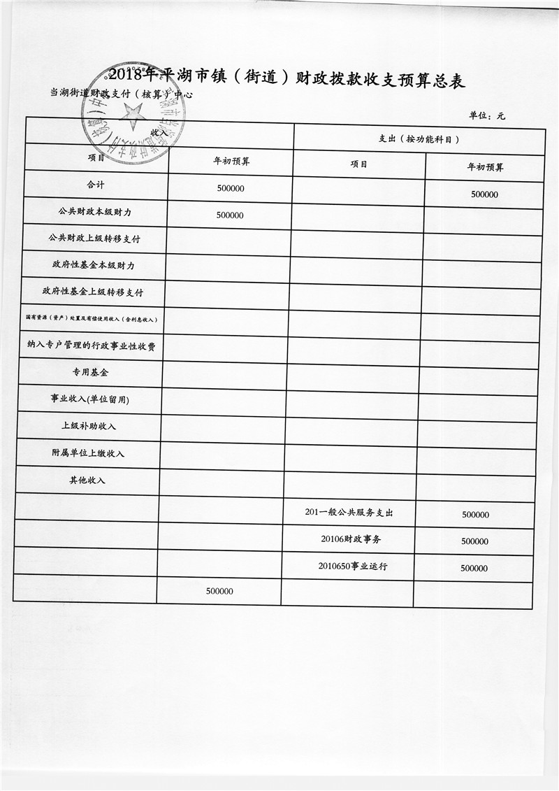 平湖市当湖街道财政支付(核算)中心2018年部门预算