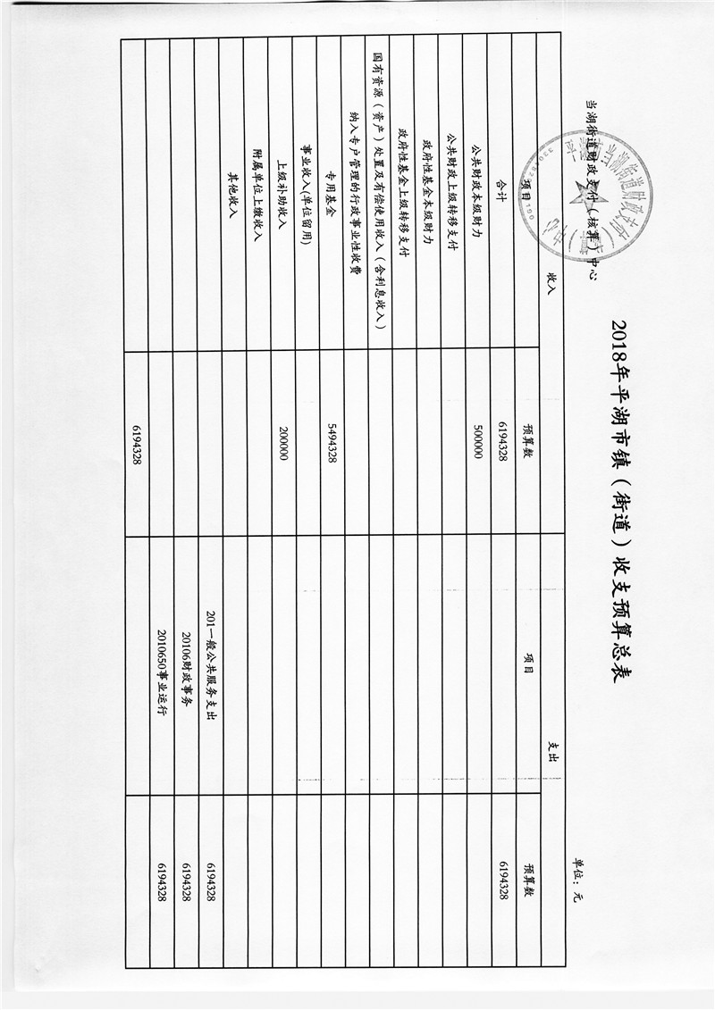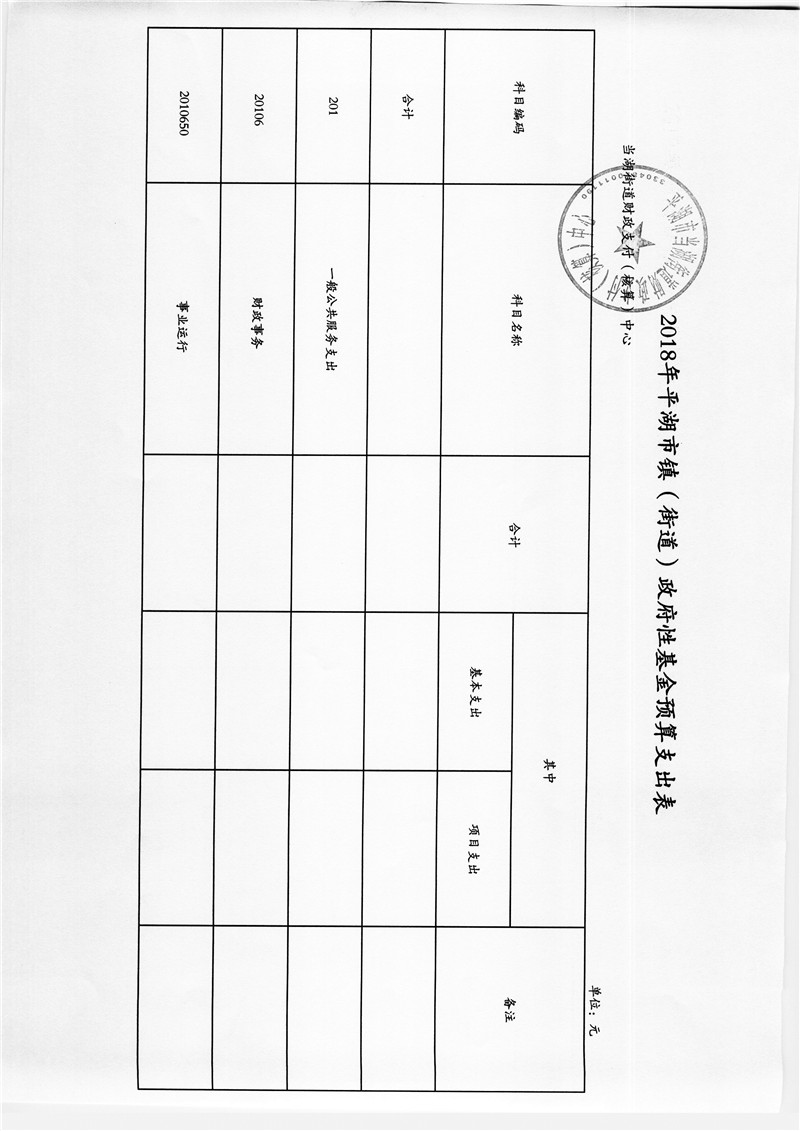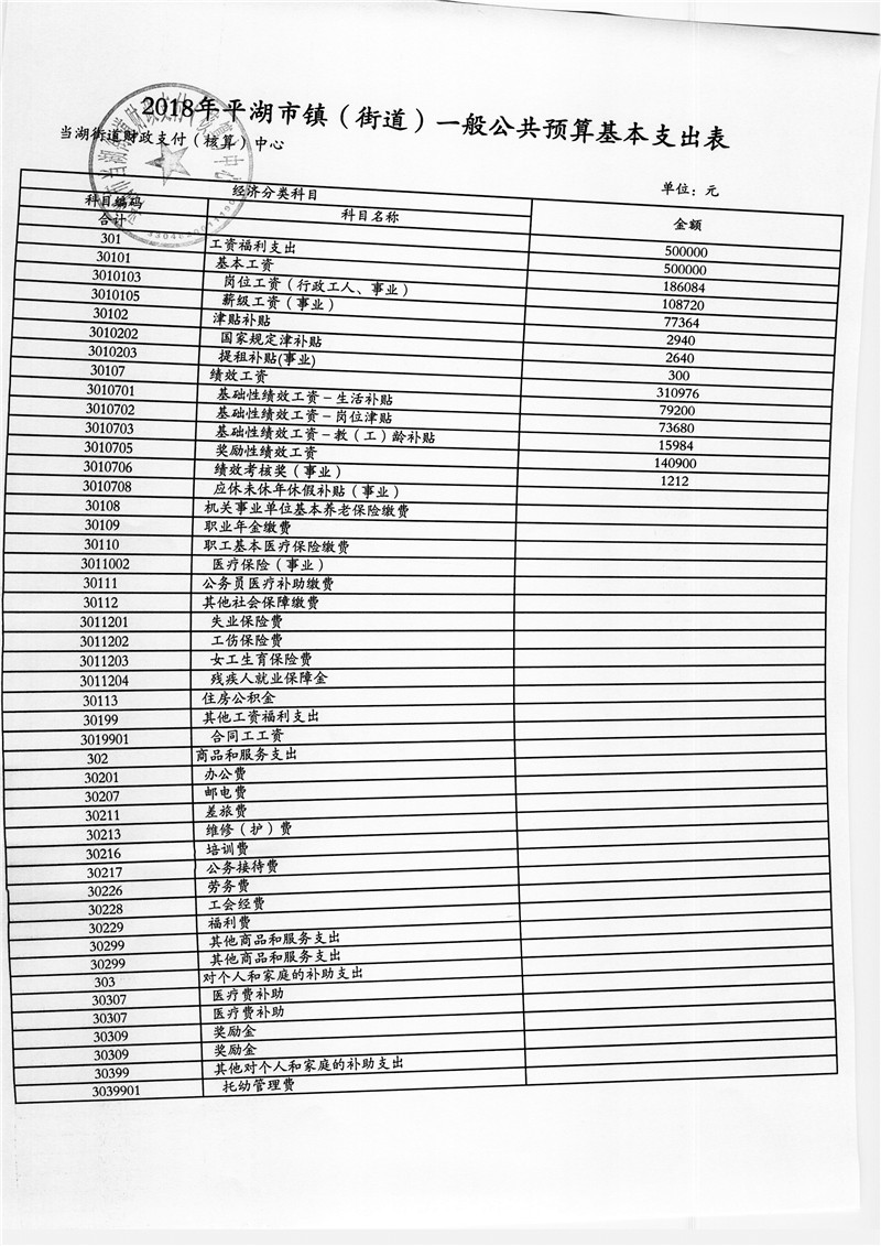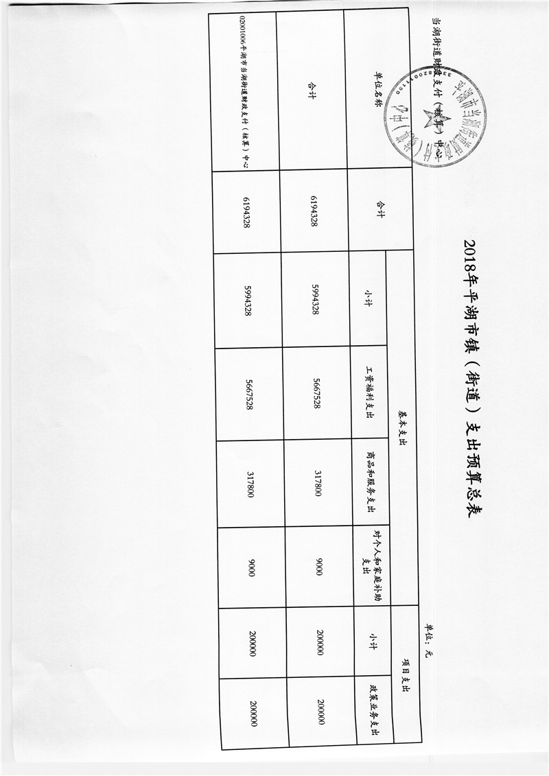 平湖市当湖街道财政支付(核算)中心2018年部门预算