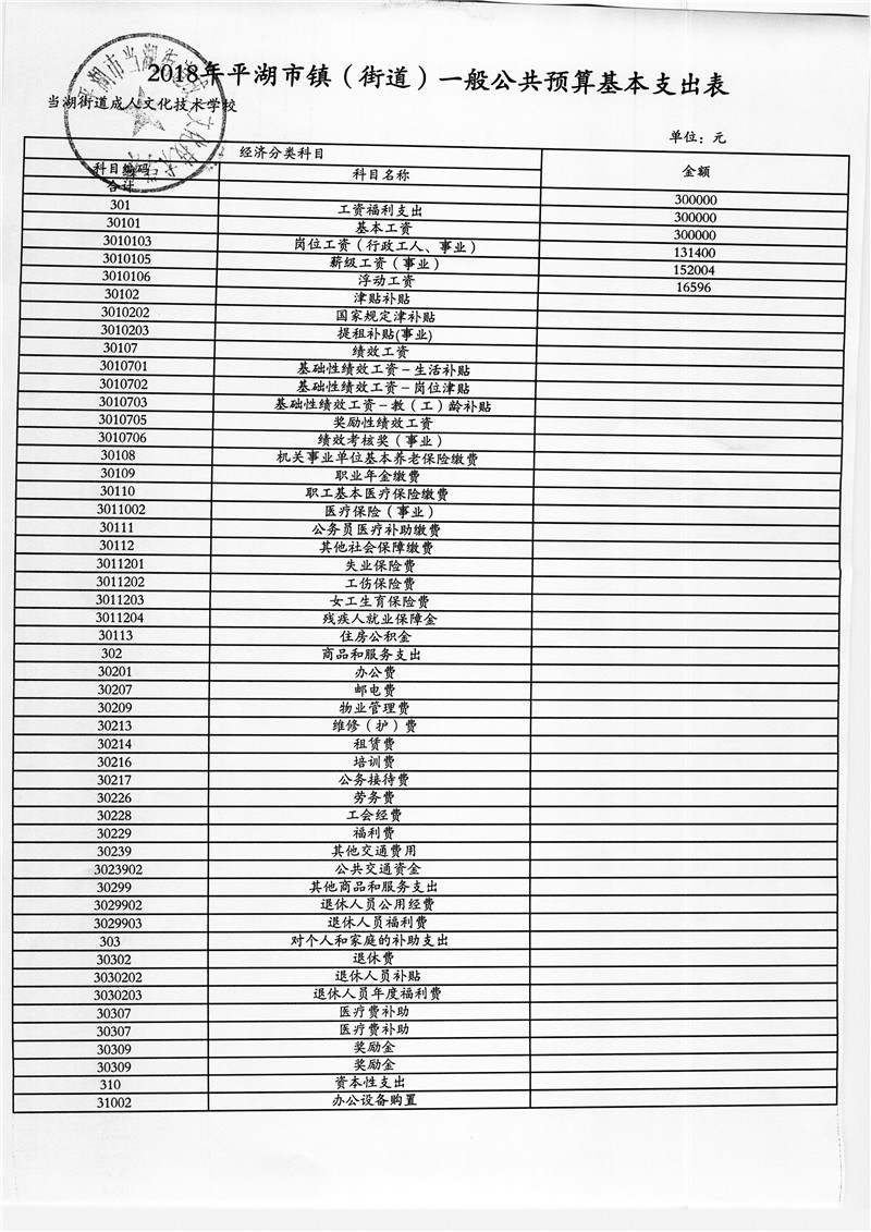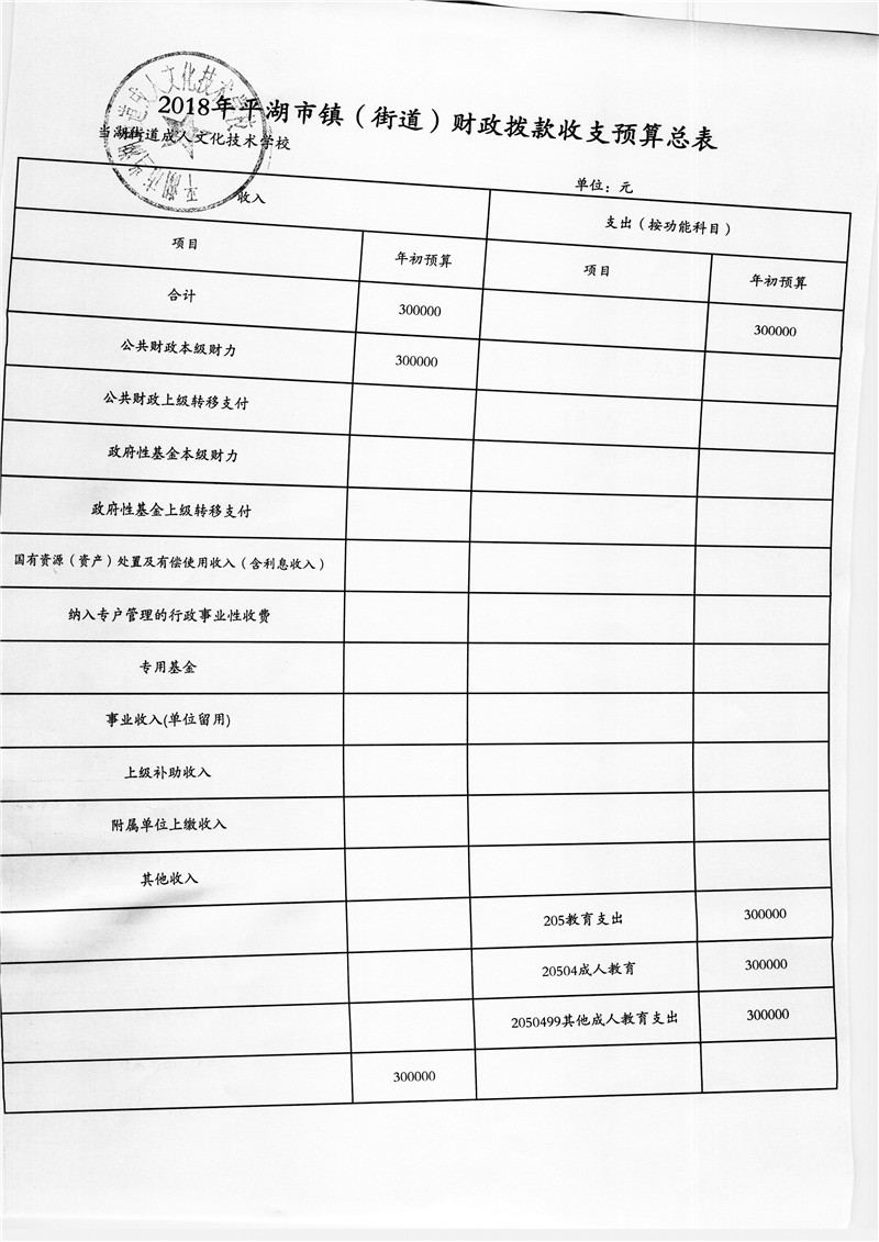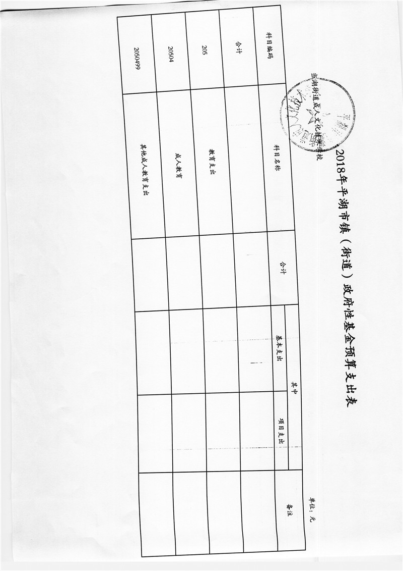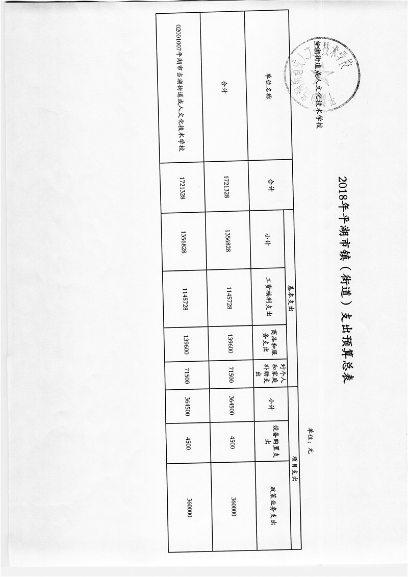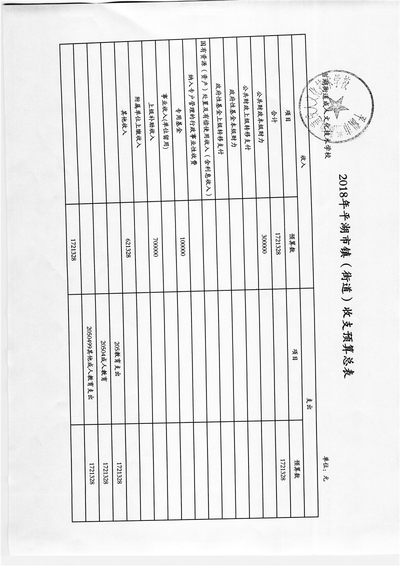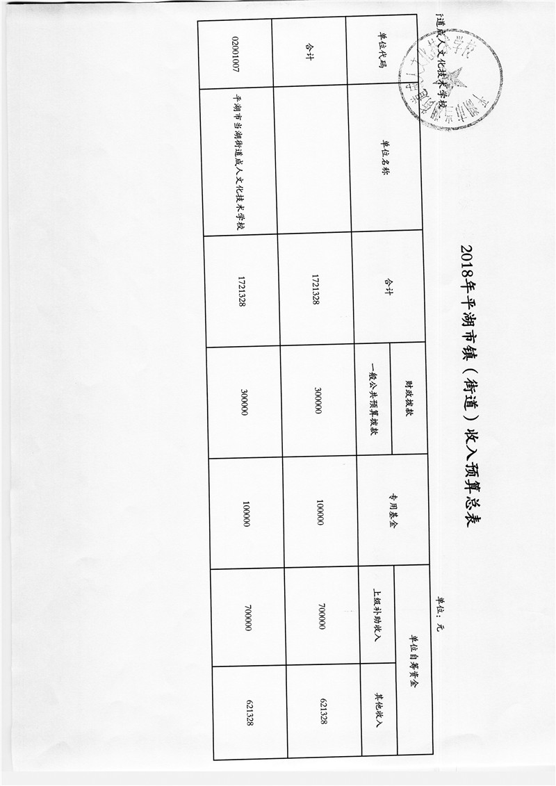 平湖市当湖街道成人文化技术学校2018年部门预算