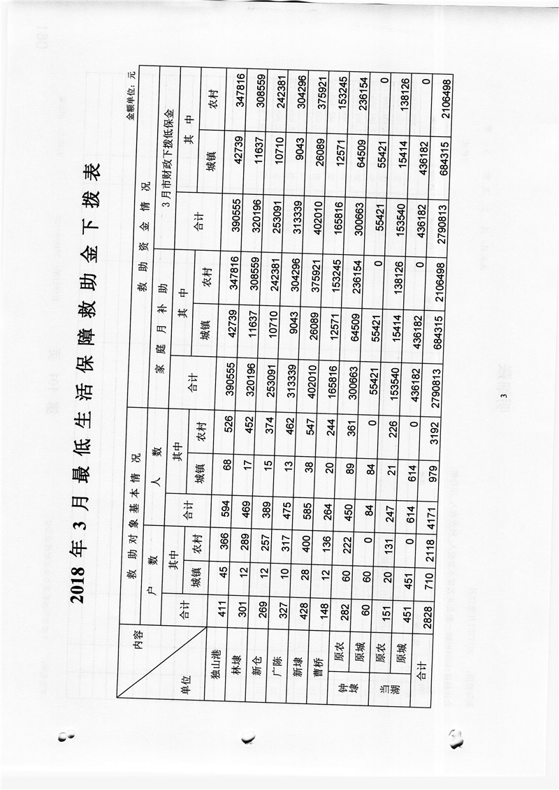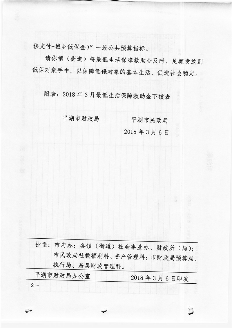 关于下拨2018年3月最低生活保障救助金的通知