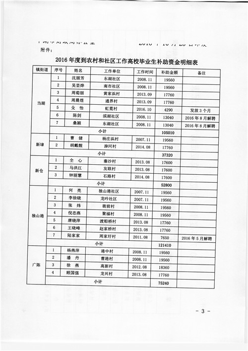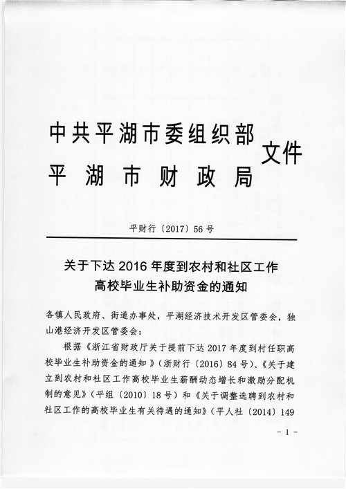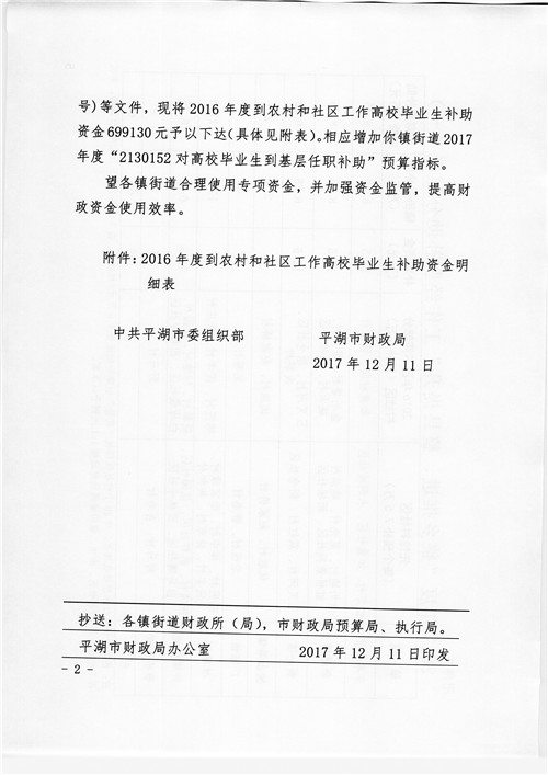 关于下达2016年度到农村和社区工作高校毕业生补助资金的通知