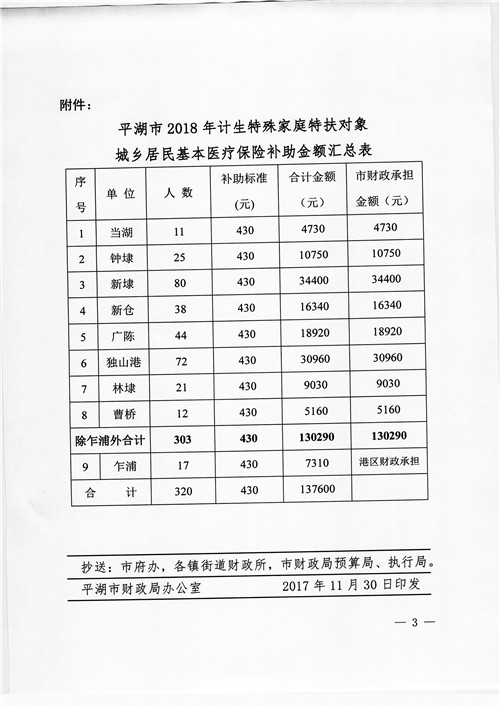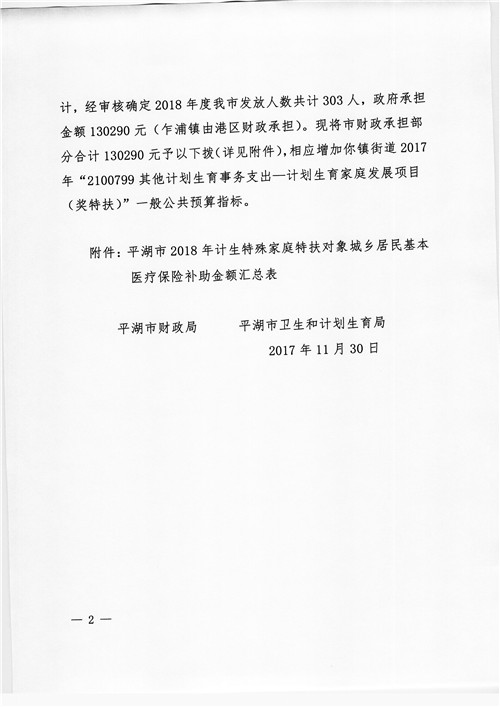 下达2018年度计划生育特殊家庭特扶对象城乡居民基本医疗保险补助款