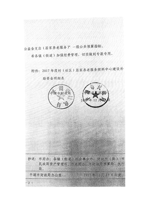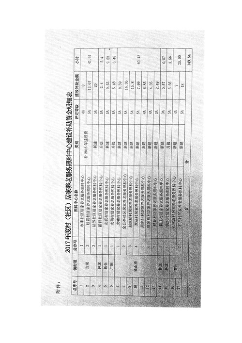 2017年度村(社区)居家养老服务照料中心建设补助经费