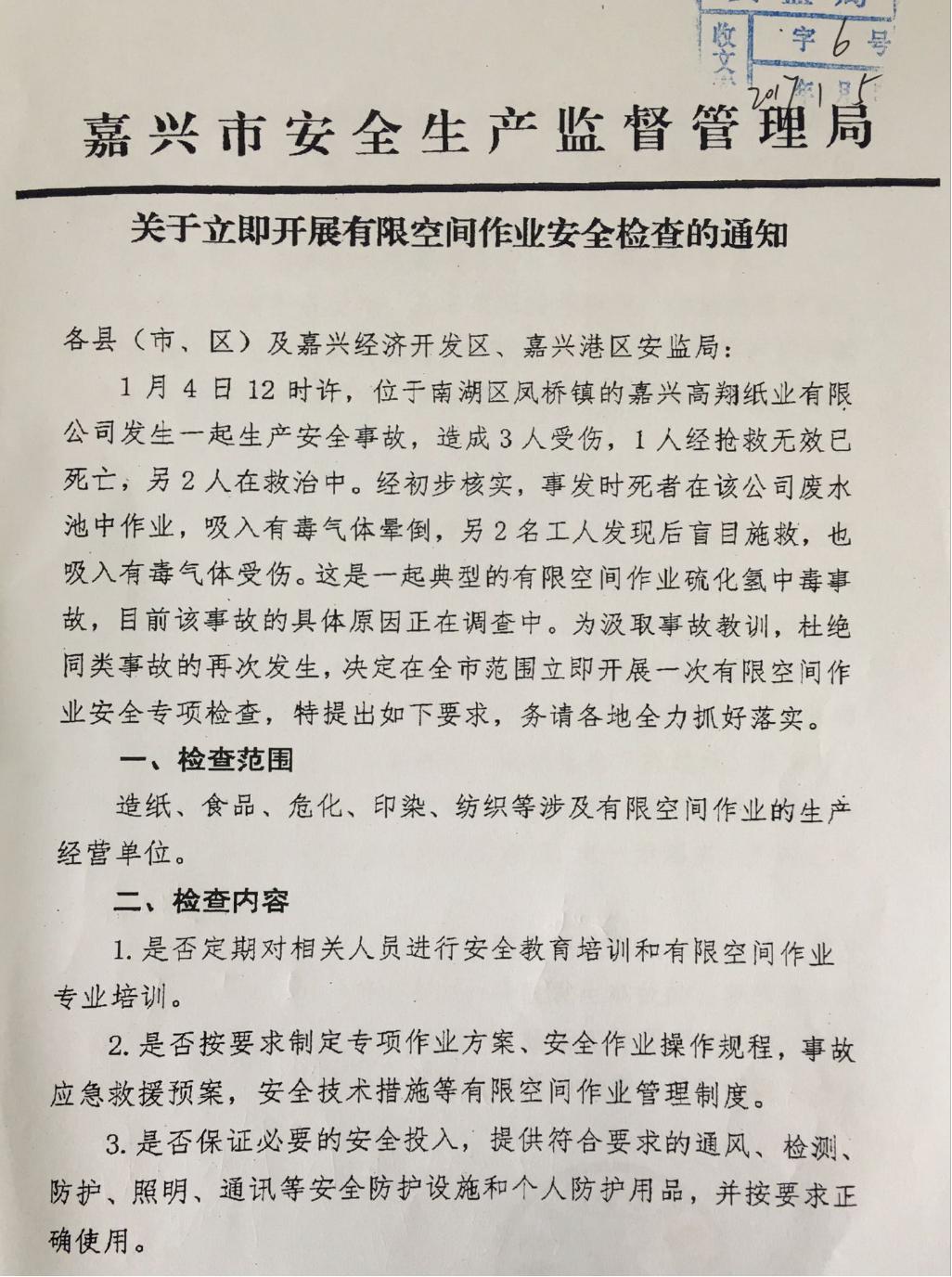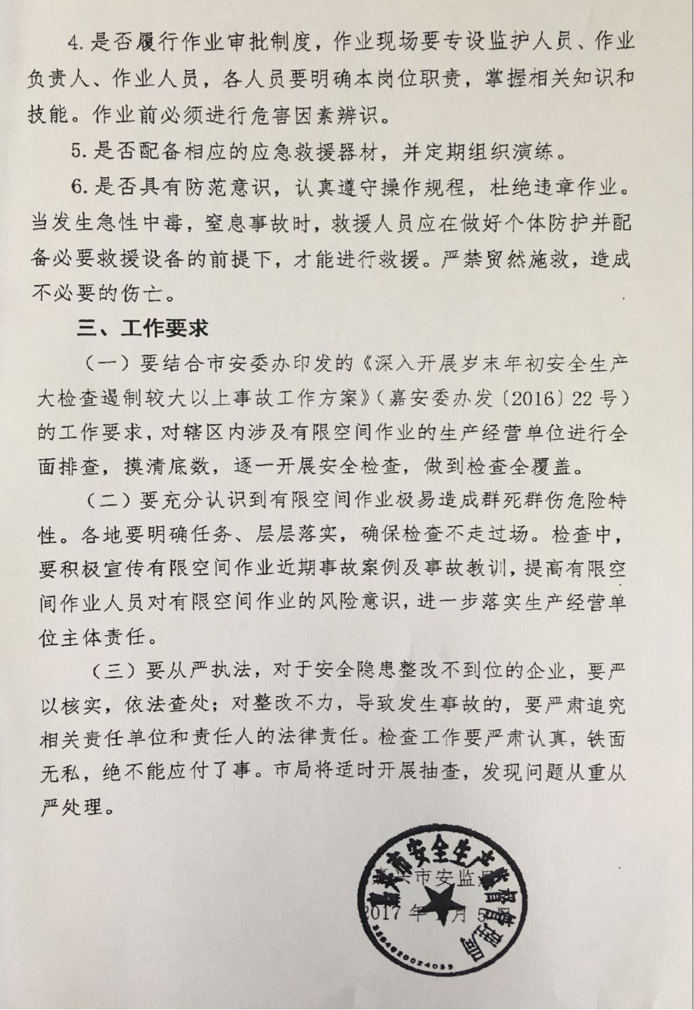 现将嘉兴市安监局《关于立即开展有限空间作业安全检查的通知》转发给你们,请结合实际,认真组织实施。