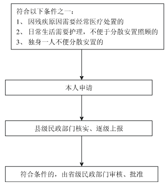 《军人抚恤优待条例》第二十八条 退出现役的一级至四级残疾军人,由国家供养终身;其中,对需要长年医疗或者独身一人不便分散安置的,经省级人民政府民政部门批准,可以集中供养。