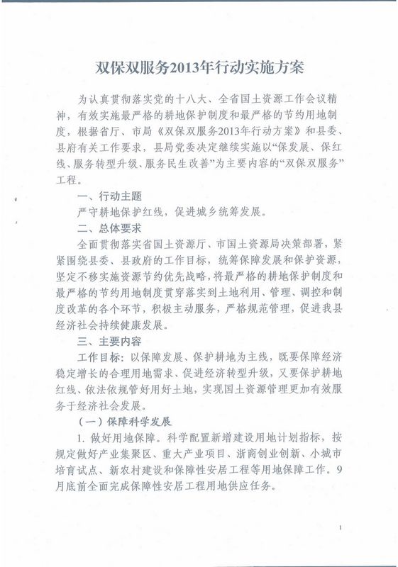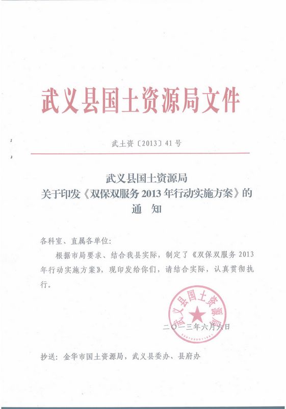武土资【2013】41号 关于印发《双保双服务2013年行动实施方案》的通知