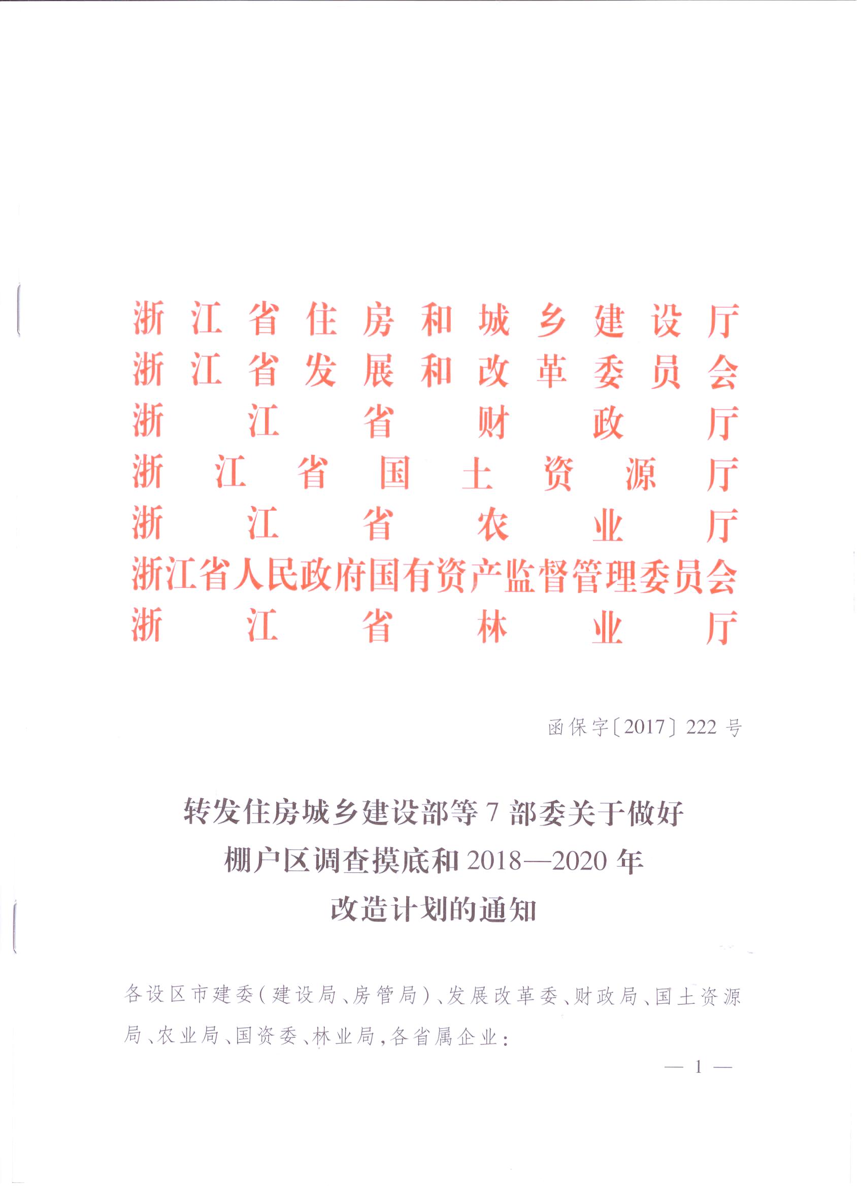 转发住房城乡建设部等7部委关于做好棚户区调查摸底和2018-2020年改造计划的通知